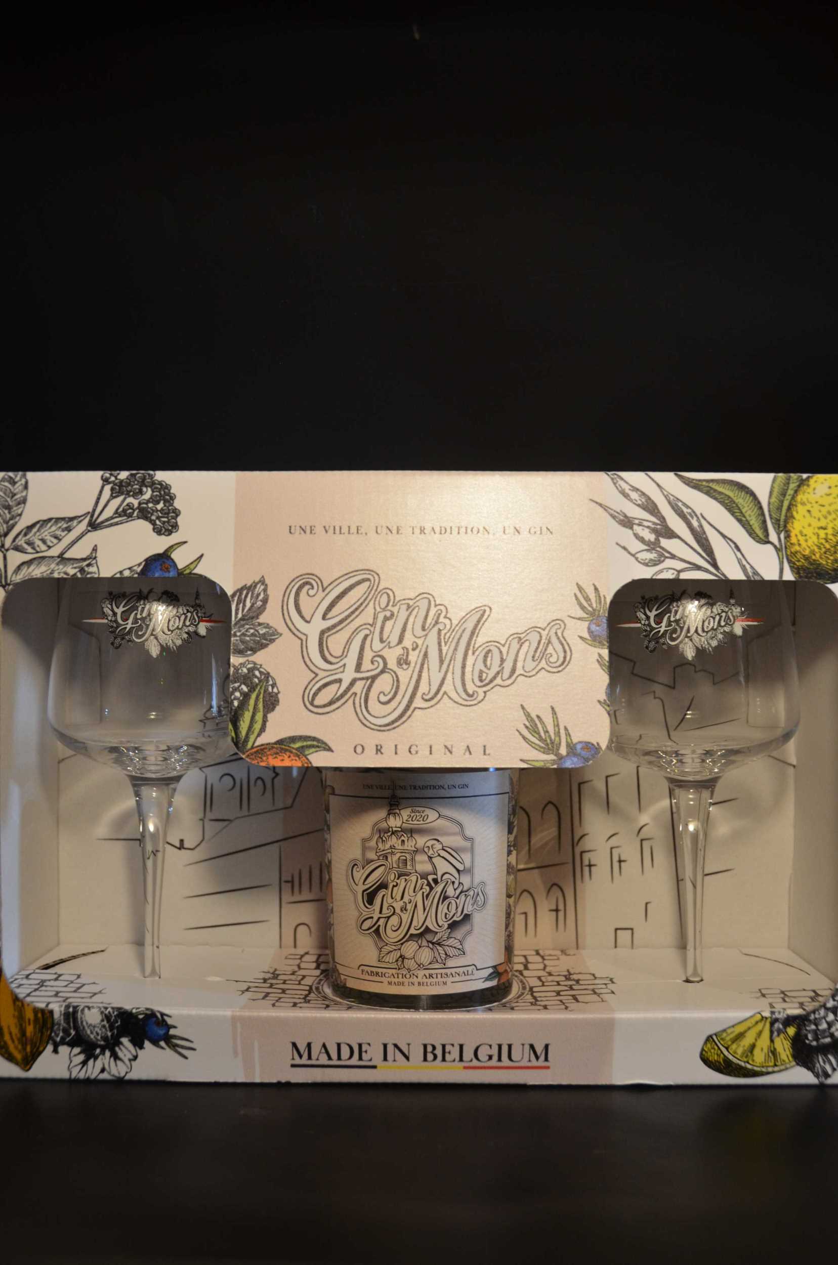 Gin d'Mons Coffret + 2 Verres - 40° - 50 cl